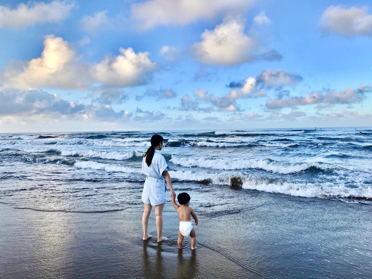 今天是敬哥第一次來海邊,完全不怕海水,一直要往海里跑,即便海水蓋過他的膝蓋都不會害怕