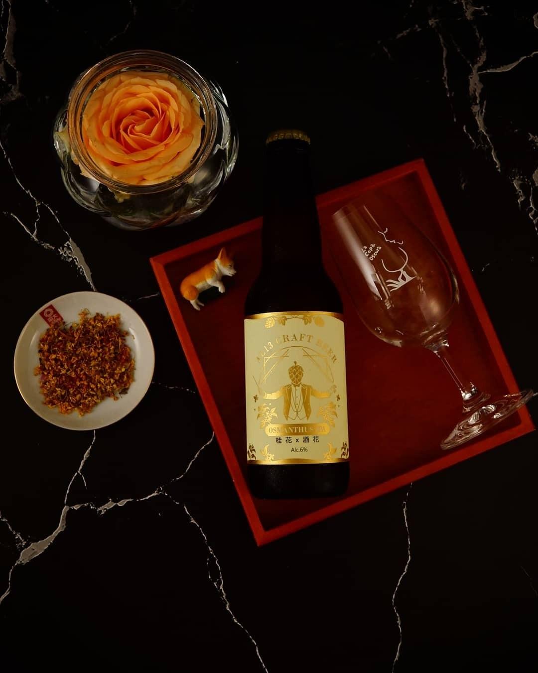 桂花狂想曲是目前AL13最新的酒款,以啤酒類型IPA發想,從一個平易近人的味道,一個香氣明顯的植物,一個味道普遍的,就這樣不斷地聯想下去,釀酒師們想到了桂花,釀造時加入桂花,至於製程細節在這就不做討論了。