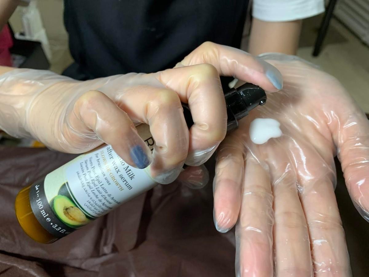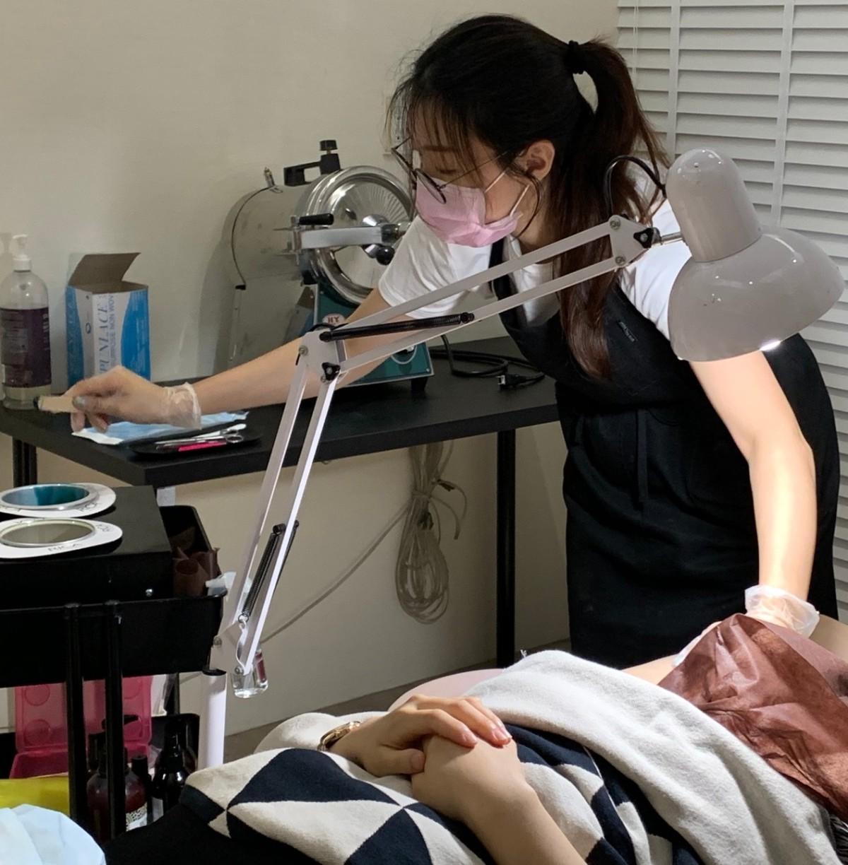 感受最棒的部份是,從開始到結束,每個步驟都很細緻的呵護,結束前會使用黃色軟蠟做收尾,去除一些小細軟毛,最後再用夾子清理內孢毛的部分,非常仔細細心呢!