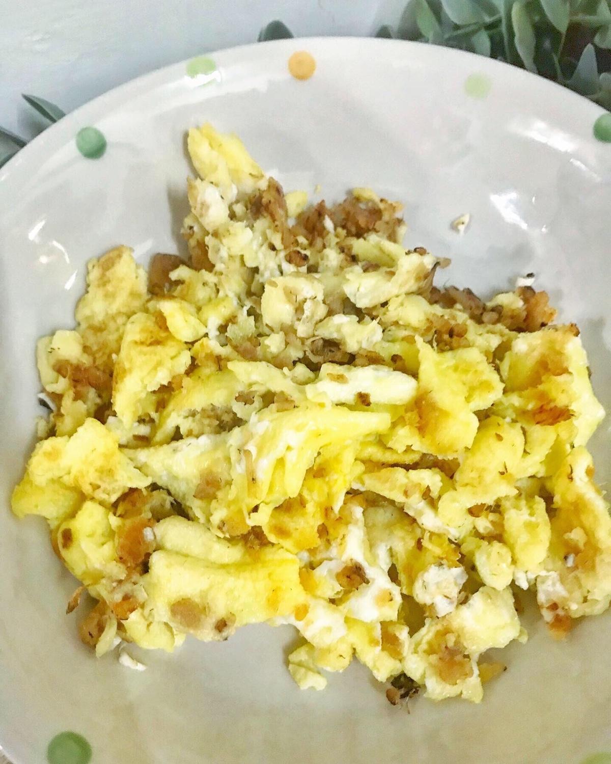 今天用旗魚鬆加點白芝麻和亞麻裸仁拌一拌做成小飯糰,兩個吃的津津有味,根本不用配什麼菜了😑另外我還用了古早味旗魚鬆炒蛋,因為這款魚鬆比較塊狀有嚼勁一點,拿來加入料理中其實蠻適合的,而且也多了一個香氣☺️如果有買這款的朋友們可以試試看😋