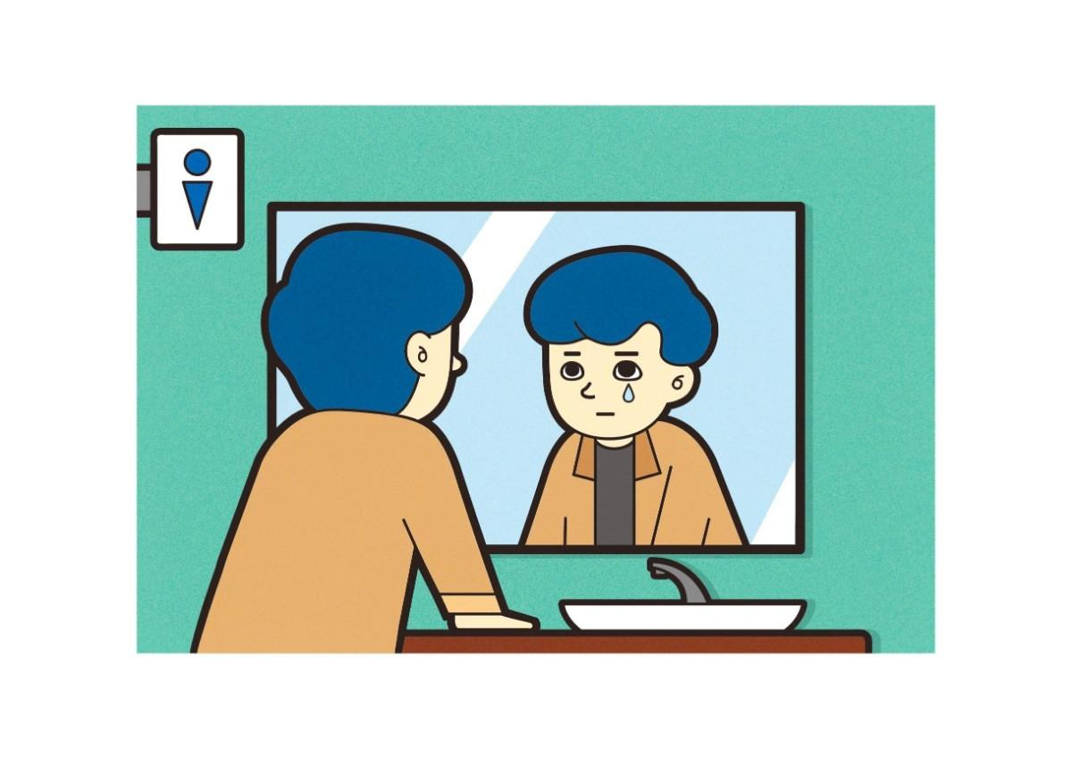 [插畫]公司廁所鏡子 1 / 1在公司廁所對著鏡子說8小時很快就過了😭/追蹤追起來藍噪音工作室👉iG:blue_noise_studio#藍噪音#插畫#artwork#graphic#illustration 藍噪音小厭世的日常插畫