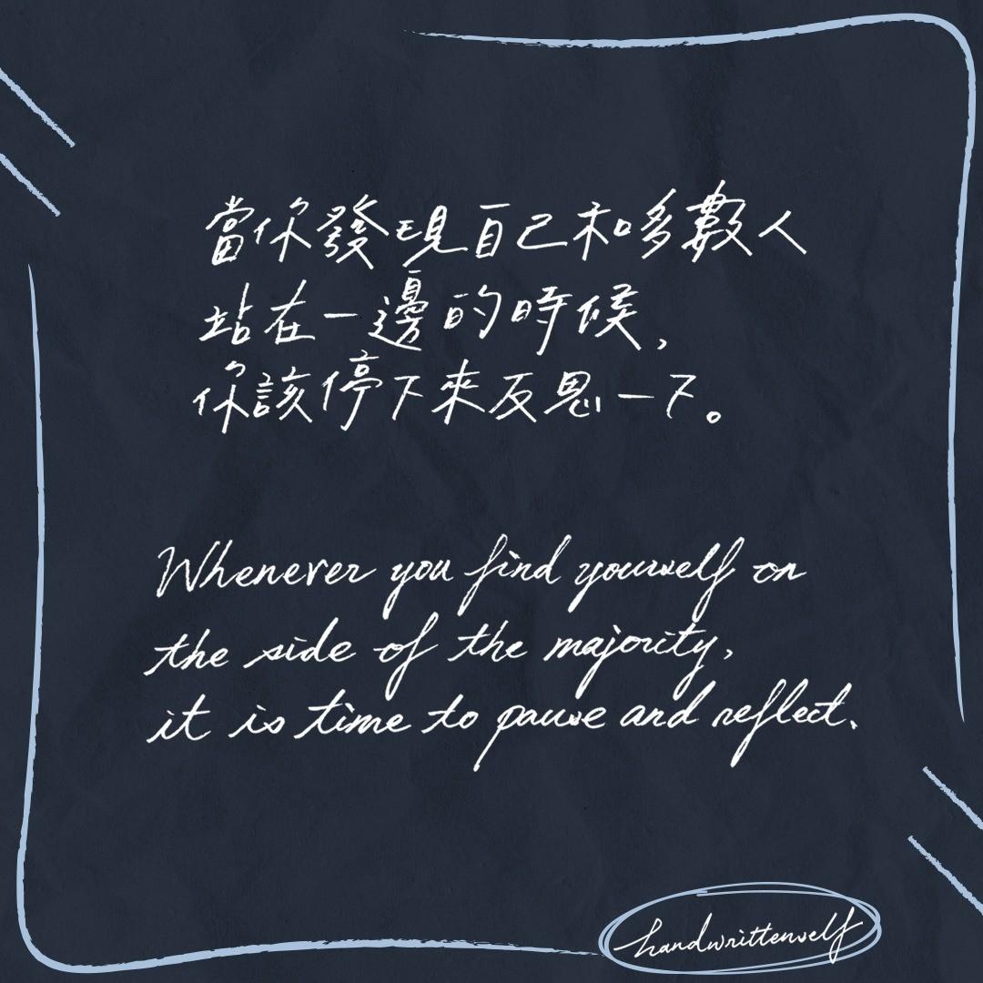 當你發現自己和多數人站在一邊的時候,你該停下來反思一下。