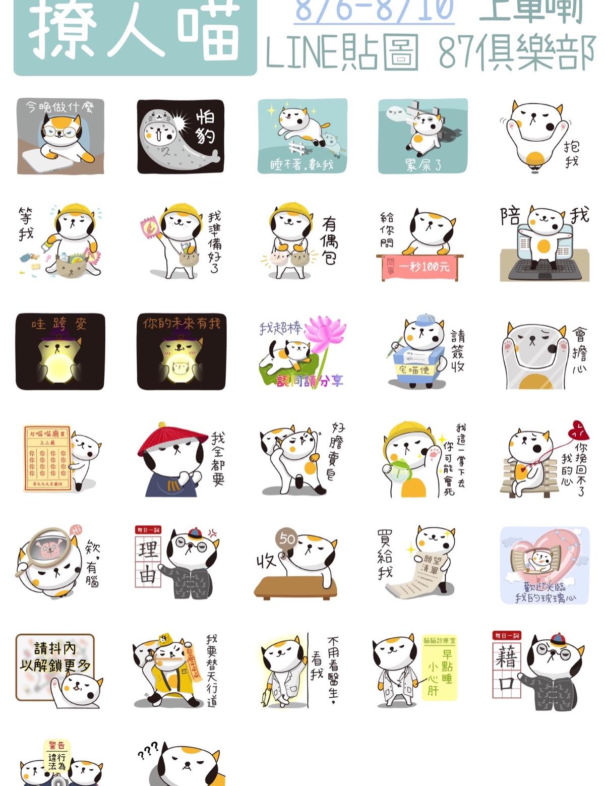 撩人喵 `ᴥ´ Line87俱樂部,上車啦! 1 / 1購買貼圖可以參加抽獎喔趕快去參加吧👉點我新貼圖-走這兒:點我不管我就是要用力撩-走這兒:點我點我我是一隻愛撩天的傲嬌喵咪撩人喵IG: meowme_meme PT撩人喵
