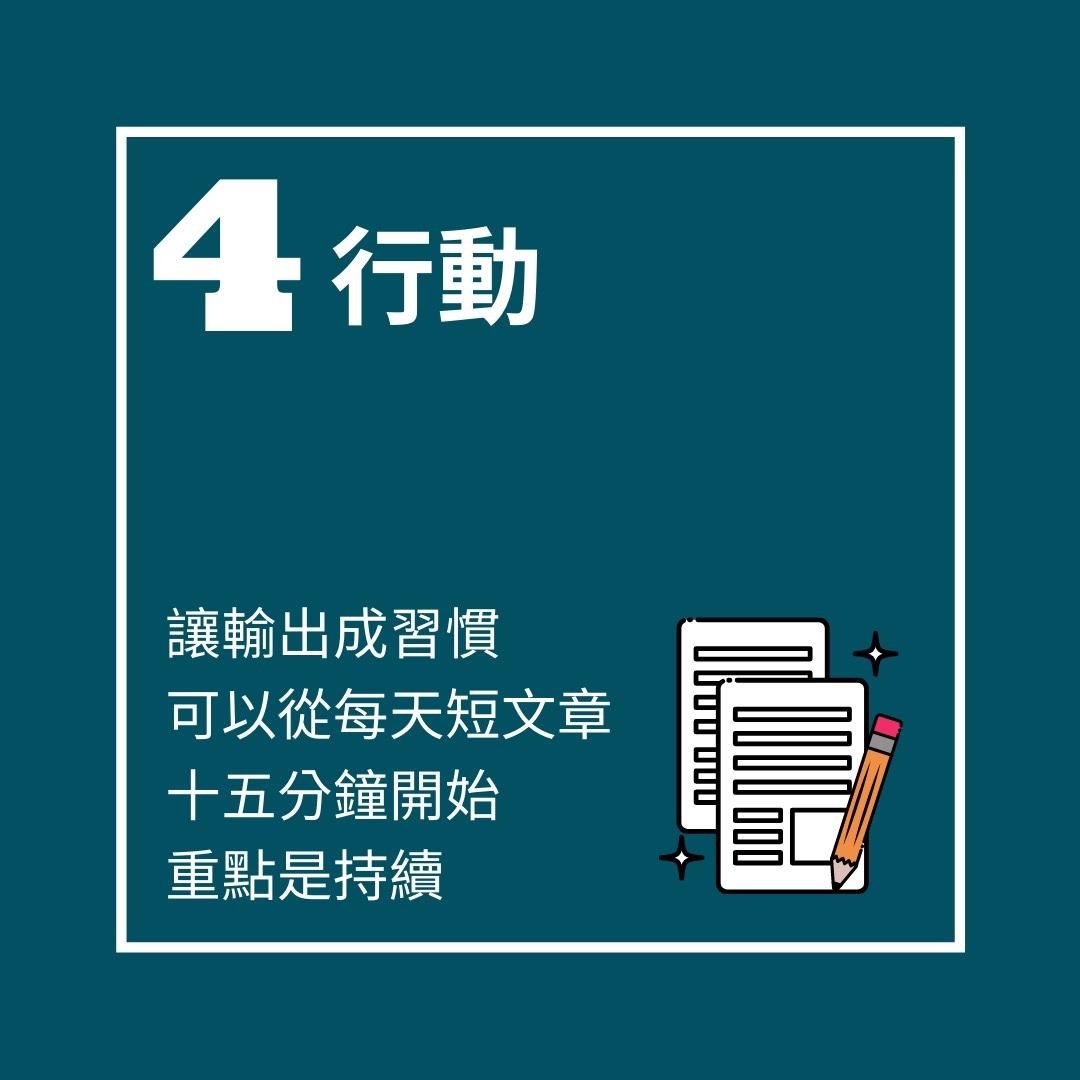 1.摘要:看完書或電影,用短文字記下摘要心得,練習在短時間內產出觀點