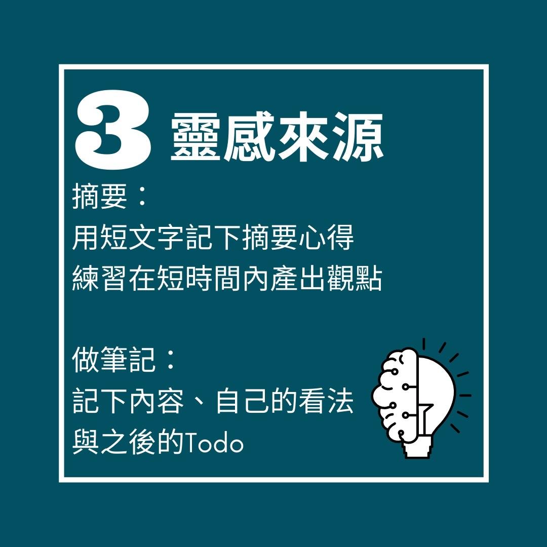 2.做筆記的方式:筆記不是只有記下內容,還要記下自己的看法,與之後的Todo