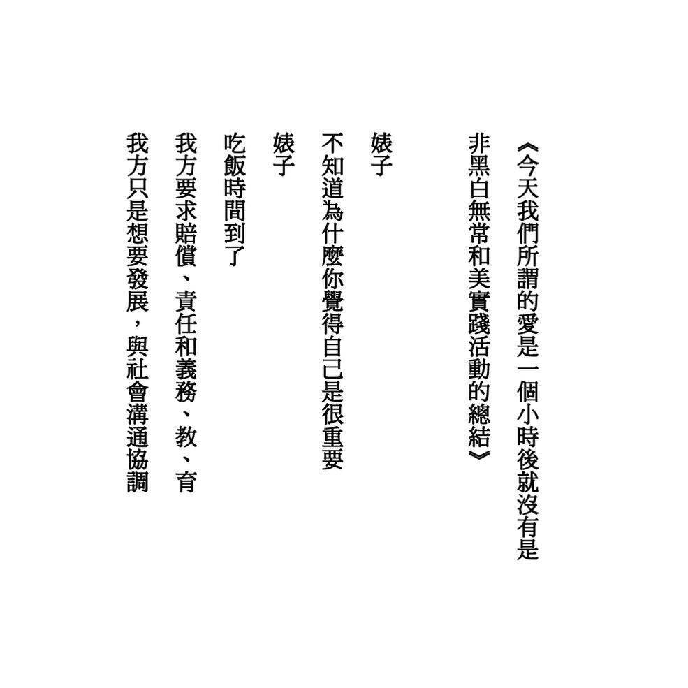 最後是中間段,雖然過於直白地以父權口吻諷刺,但依然有一些有趣的地方,譬如作者特別把教與育拆分,原本是女權爭取的受教權,瞬間逆勢成為父權箝制女性的規訓工具,作者對於文字的敏銳度不可不謂細緻」