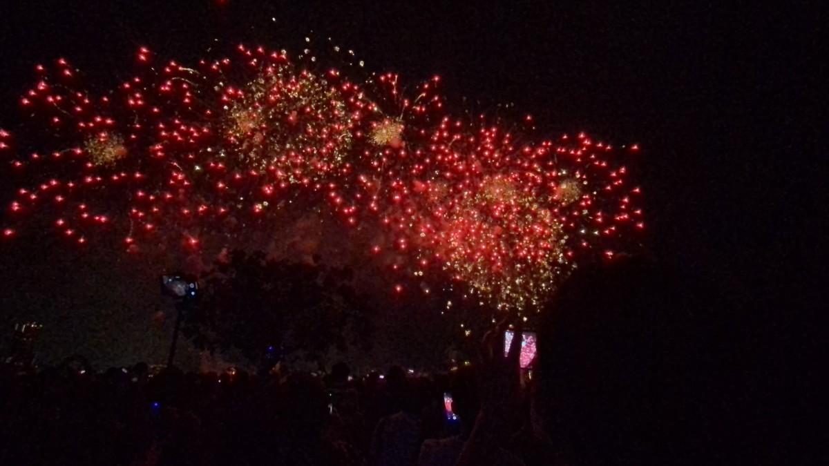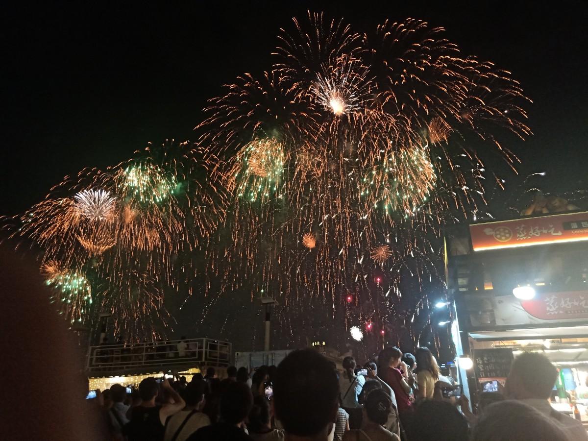 看完電影,就跟一群朋友趕場去大稻埕看煙火,一路上人真的好多,擁擠人潮,還好另一群朋友已經先佔好位子,說這裡是最好看煙火的視角還可以聽音樂,因為煙火8:20才放,我們就一直玩遊戲,終於等到煙火施放那一刻,真的好美,實在是太值得了!