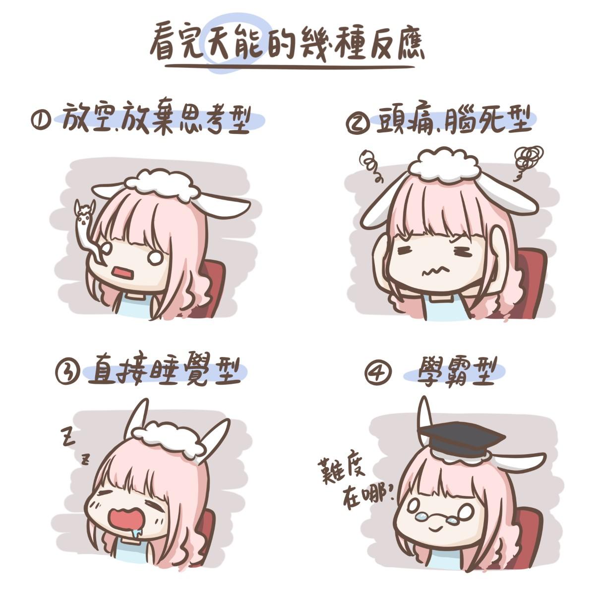 這邊畫了幾種看完天能後的反應,你是哪一種呢?