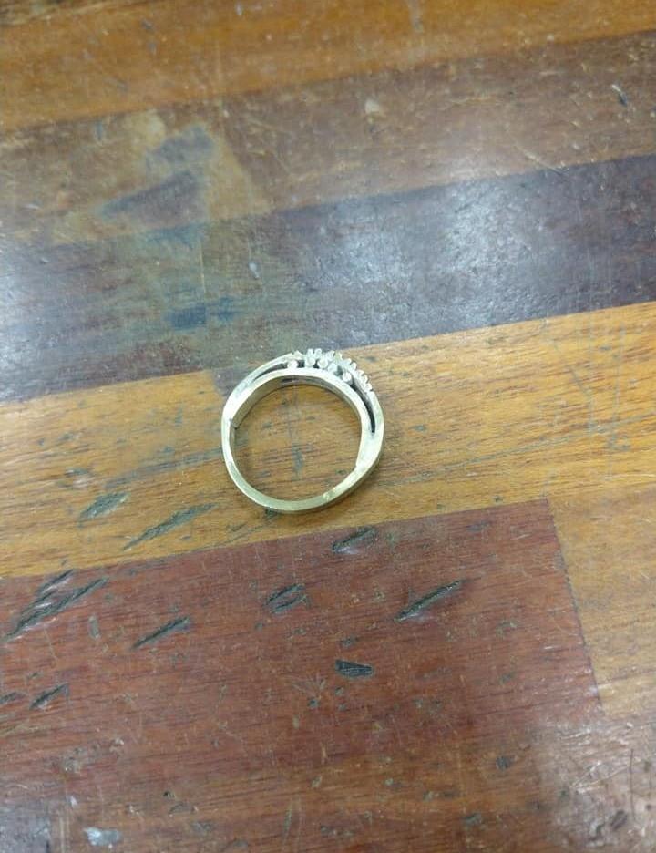 鑲鑽的和包鑲的比較不一樣的是,不用像那篇文章寫的那樣需要合起來,或說合起來的方法不同,鑲鑽的那一個會先故意把兩個口開著不連接,那個開口的地方是黏鑽座用的。先說,下圖是我找類似款式的,並不是我的作品,只是一個參考圖而已。下圖這個有用爪鑲,但我的並不是爪鑲,只是戒指的長相跟這個有點像,而且我用的,是黃銅喔。