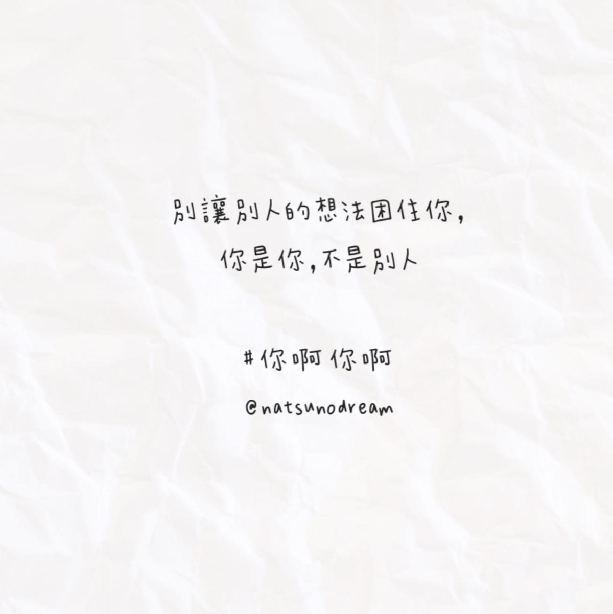 雖然別人的意見很重要,但人生還是掌握在你的手上,別讓別人掌控你的人生,你還是你啊
