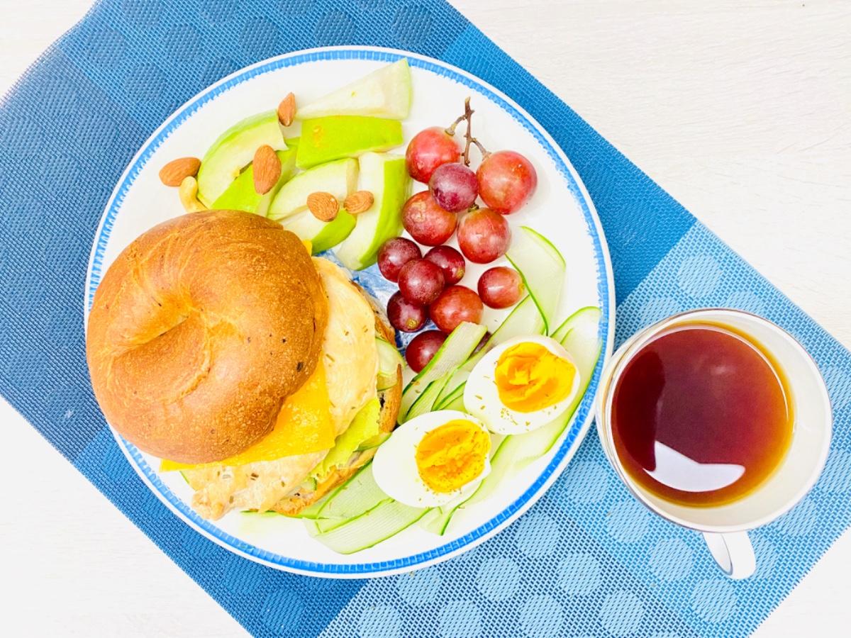 主食:醬烤雞胸起司🧀水煮蛋生菜貝果