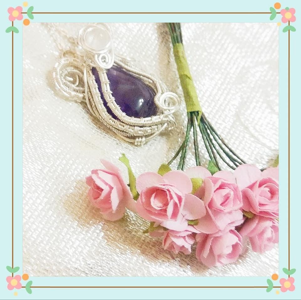 材料:藝術銅線、合金鍊子、紫水晶、月光石