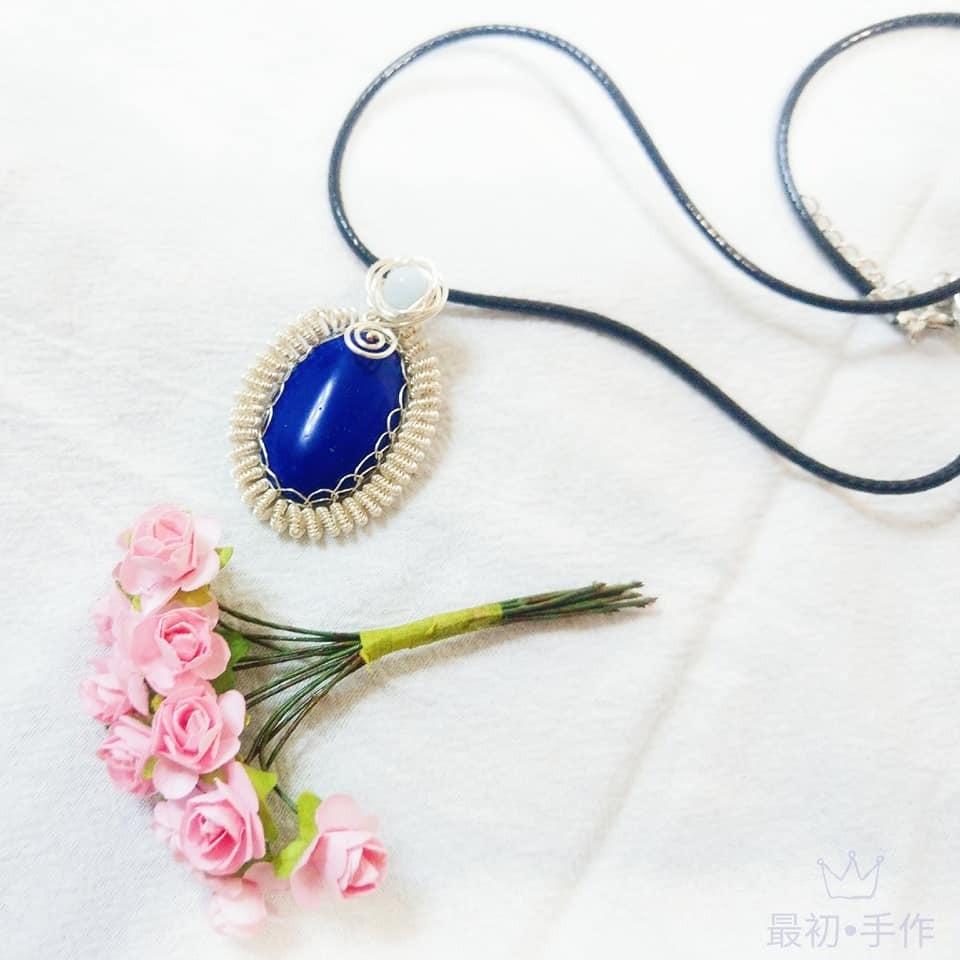 使用材料:藝術銅線、青金石、海藍寶石、皮繩鍊子(鍊子可換)
