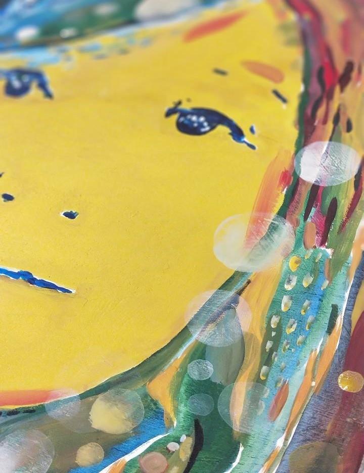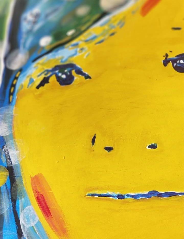 寫著「實體」時,笑了一下,身體的各個部位似乎飄離了,