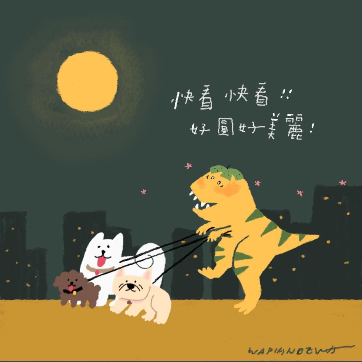 #瓦片的瓦 #wapiandewa #插畫 #手繪 #恐龍 #狗 #中秋節 #月圓 #illustration #handrawing #dinosaur #dog #MoonFestival