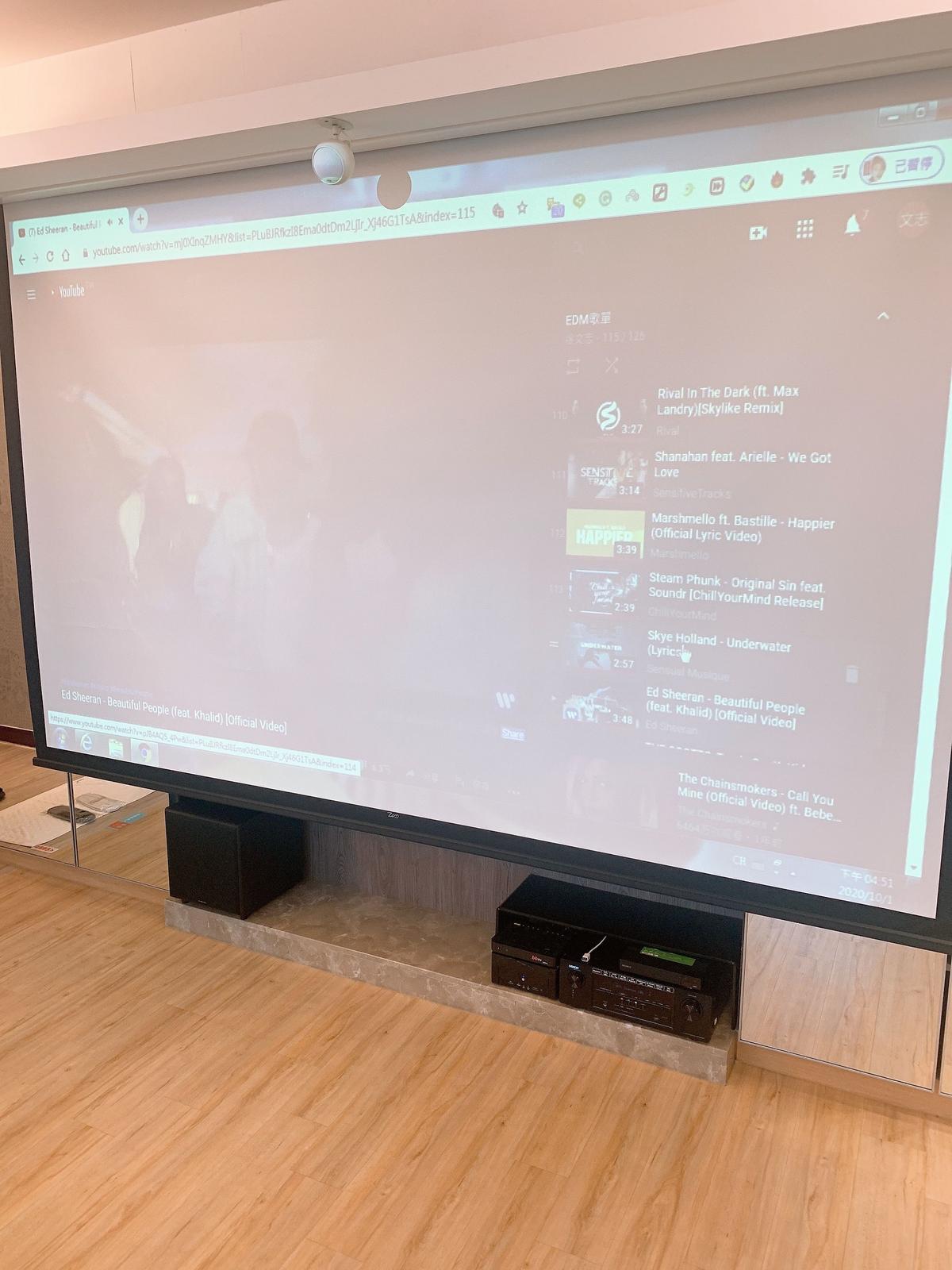 客廳配備:超越世界等級~"全區藍光不挑片"高等級150吋大投影(電動布幕),長3米30cm,提供"玩家等級"鑑賞.配備"高畫質"數位第四台系統