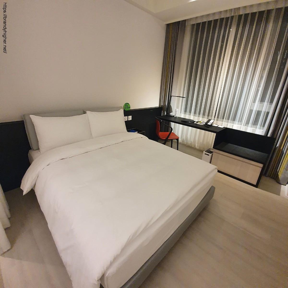 有幸以團客價入住這間落成不久的新飯店,定位在行旅的台中大毅老爺行旅在AGODA上有四顆星的評鑑,雙人房價位約落在四千上下(尖峰節日可能會更貴),以2019才落成的商務旅店來說價位所中間值,內裝的部分一樓僅有櫃台、一處稍坐休息的空間以及一間餐館ZEBRA義式餐廳(也是早餐用餐的地點)。