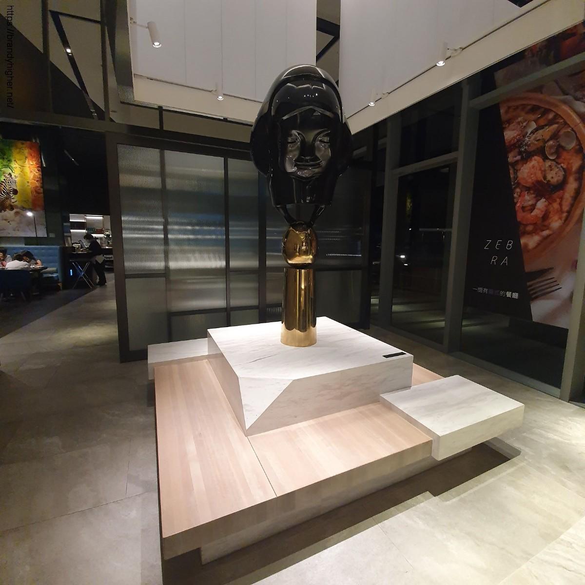 餐廳外的裝置藝術頗驚悚(人臉),四角可以坐著休息