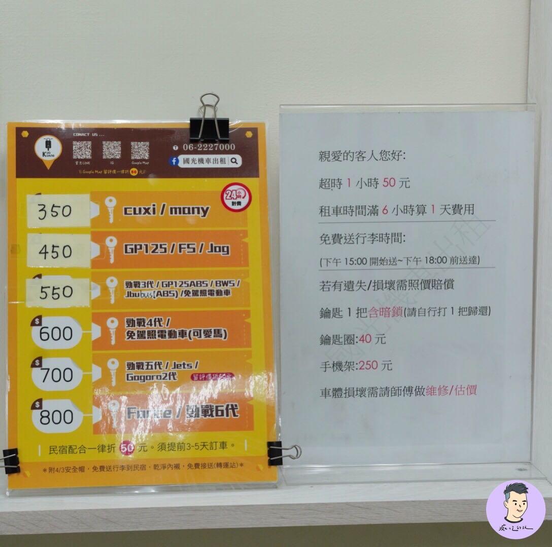 台南租機車推薦【國光機車出租】全新車款350元起!免費行李寄送/飯店接送 學生壽星現折50元 台南火車站前/免押證件/免簽本票/免保證人 台南一日遊租車推薦