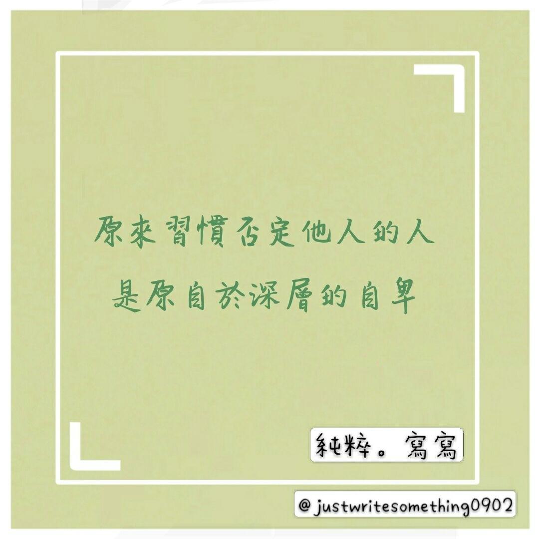 突然發現原來習慣否定他人的人 是原自於深層的自卑 所以習慣貶低他人來墊高自己 通常他們都不願意承認和面對 而我也未必真的如他所說的那麼糟 他很矛盾的希望你好但又不希望你太好 因為你的鋒芒可能刺傷他自卑的那一塊 呼...明白了這點後,心瞬間鬆開了些 #習慣 #否定 #自卑 #自我認同 #自我肯定 #自我價值 #純粹寫寫 一起到IG看更多文章吧~ @justwritesomething0902