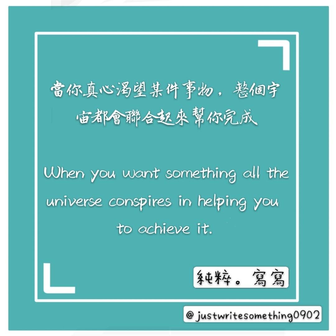 「當你真心渴望某件事物,整個宇宙都會聯合起來幫助你完成