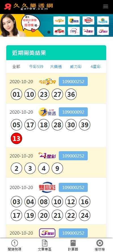久久樂透網【https://gdf99.com/】畫面乾淨操作簡單,提供許多大樂透、威力彩、天天樂、今彩539開獎號碼查詢及歷史開獎紀錄等樂透資訊哦!還有彩迷最愛的樂透工具(碰數計算機、獎金計算器、搖球機等)