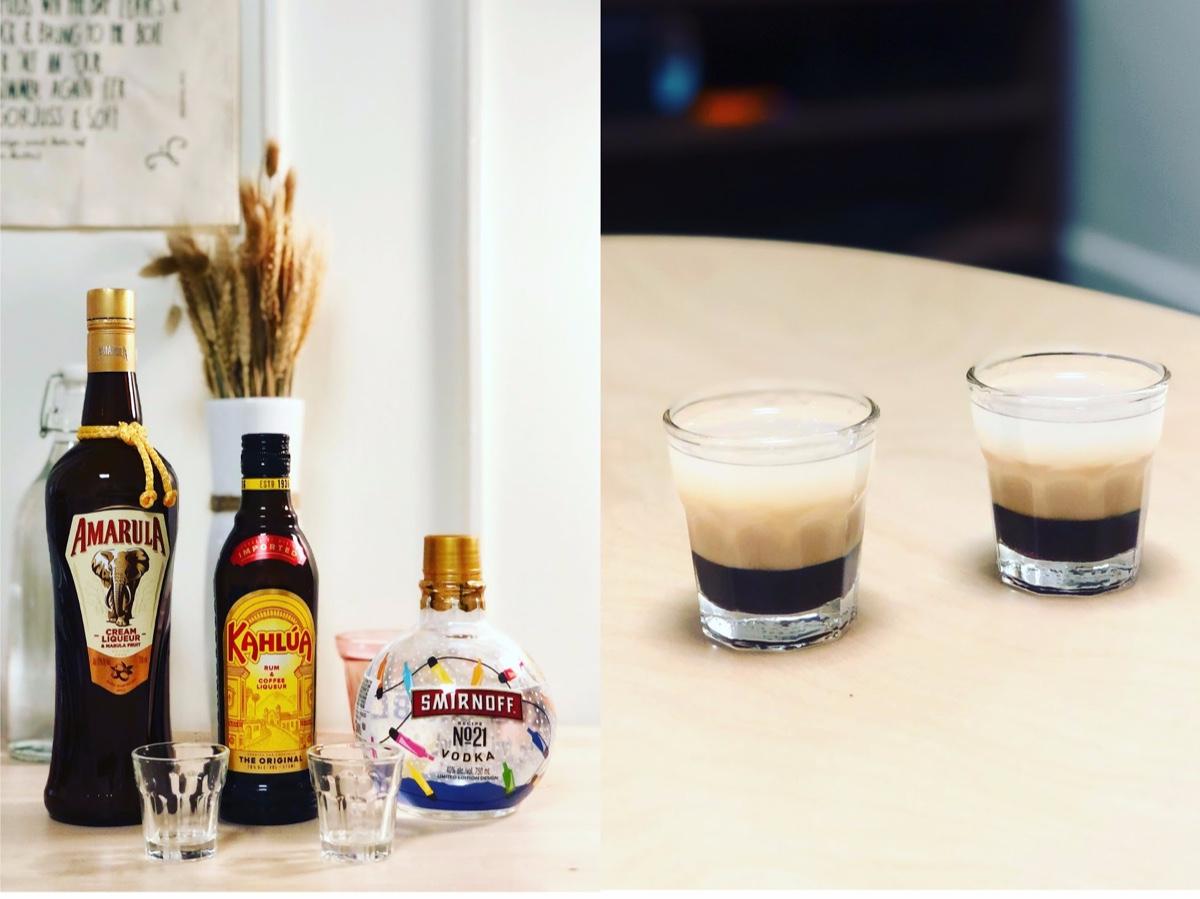 Coucou好久不見,一陣忙碌的生活不知不覺就過了一週,只好趕緊補上上週的酒單。疫情之中的美國的確不方便出門,但也因為如此多了一些去朋友家聚會的機會,無法出遊的海外學子們紓解壓力的方法變成一群人一同聚集到某位同學家的這種形式。於是就開始想有沒有適合一群朋友一起喝的,又快速的選擇呢?立刻想到著名的shot — B52,B52在台灣基本上是大學生去酒吧必點的shot,Bartender心情好的時候也經常拿這款酒出手請客人。B52的外觀吸引人,分成三層的色澤十分可愛,包含咖啡酒的咖啡香、奶酒的奶香以及vodka的嗆辣,一次一飲而盡,口中的香甜又不失酒精強度特別讓年輕人喜歡,聚會時人手一杯一起乾掉特別帶有娛樂性。