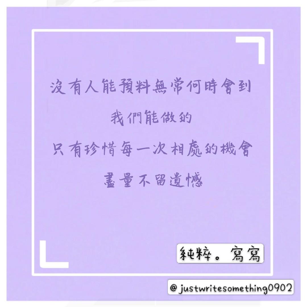 沒人能預料無常何時會到,我們能做的只有珍惜每一次相處的機會,盡量不留遺憾...