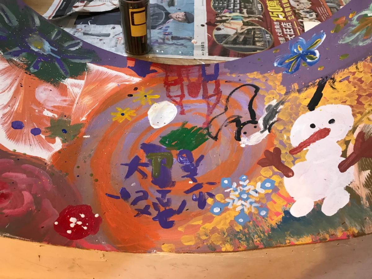 今天又去黏著牆壁畫畫啦!不一樣的是,多帶了一隻小鬼頭,小鬼頭有大人模仿不來的童稚筆觸,阿母畫的馬上遜掉:D