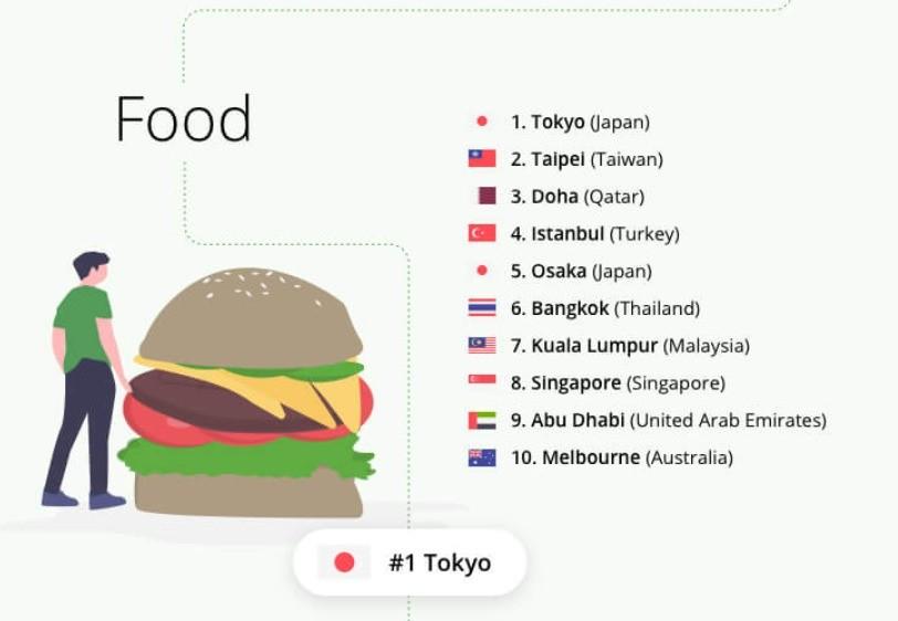 10. 食物照片標註最多的地方第一名是東京,第二名就是我們的台北啦,台灣果然是美食王國耶,怎麼能有這麼多食物照片、 第三名杜哈,有錢王國子民也是很懂吃、 伊斯坦堡、大阪 、曼谷(此張圖片來源:https://theincidentaltourist.com/)