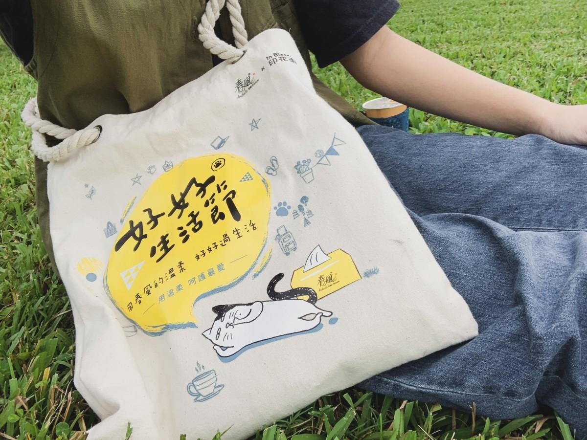 生活中的小事都很重要,因此春風衛生紙和印花樂聯名推出了「好好生活節限量包」, 將日常必備的衛生紙,搭配文創商品,為生活增添儀式感,用得開心也會記得帶出門,而春風衛生紙柔軟好延展、不易掉屑的特性,也是好好生活的典範,以溫柔的姿態面對挑戰,也不輕易投降。