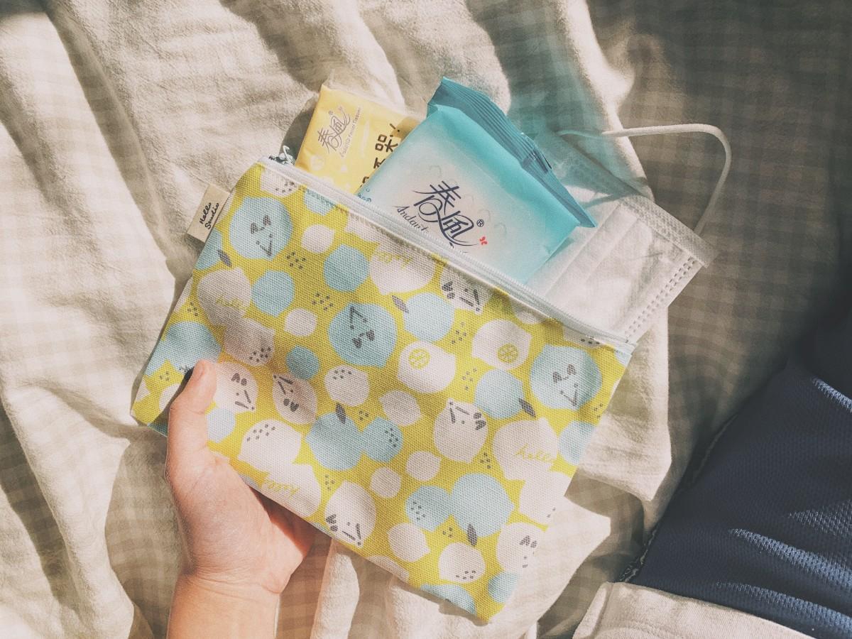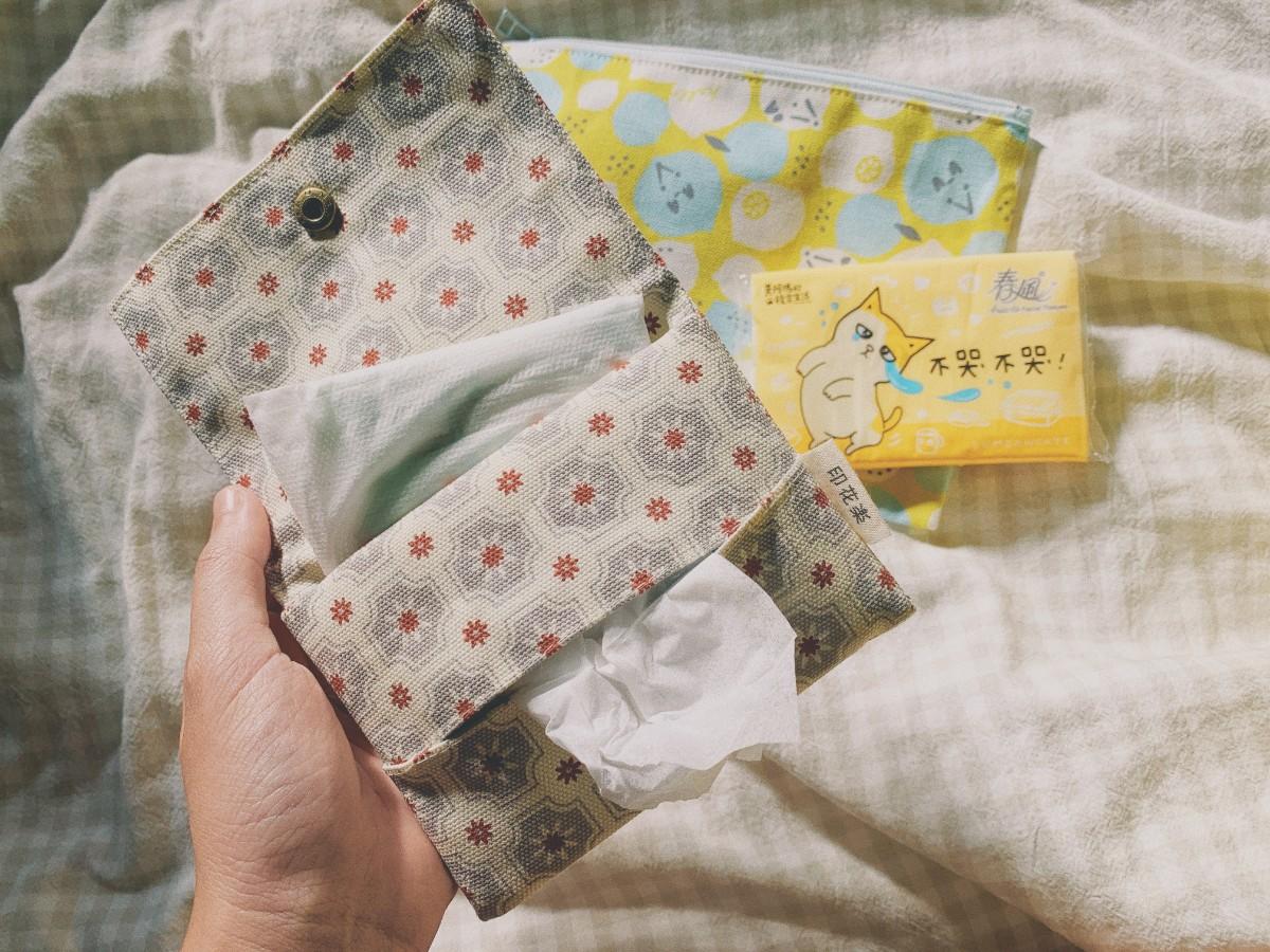 我的好好生活節限量包裡面,最喜歡的就是單釦面紙小物袋,花色是復古老磁磚,深受我心!可以放入春風袖珍包,後面還有一個夾層可放衛生棉,月經來的時候超方便,放在口袋隨時去廁所更換,陪我生理期也能好好生活。