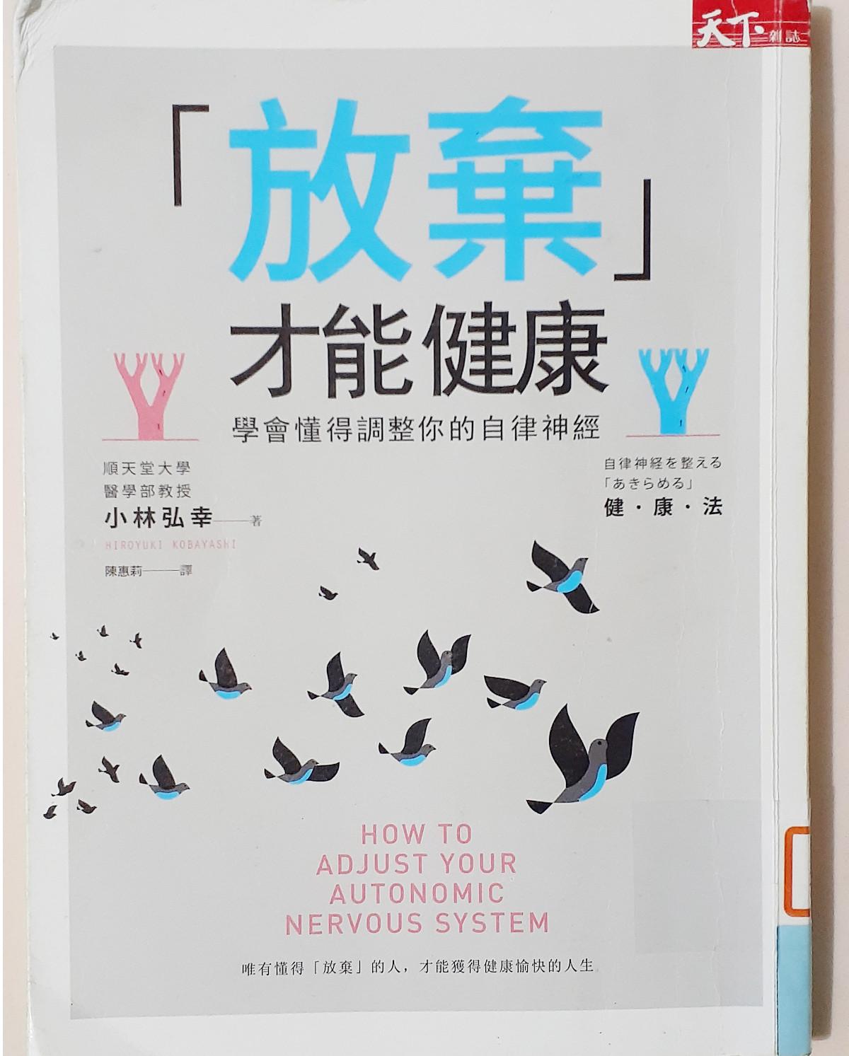 小林弘幸著作多本關於自律神經調整的書,都蠻淺顯易讀,提出針對情緒和身體可實踐的自療法,例如充足睡眠、手寫、走路 (深呼吸有益血液循環)、整理環境、放棄各種負面情緒想像、仰望天空、轉移注意、嘆氣、活動身體。