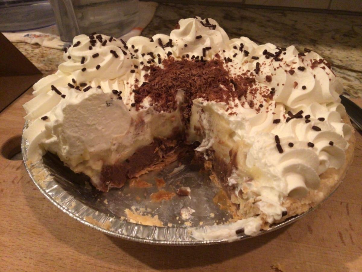 但事情沒那麼簡單,Cream pie的類別底下還有十幾種可以選,名字都是這款的,German chocolate, French silk, Bayou goo, French Black Bottom...菜單上沒有附各別的照片,幸好還有描述內餡組成的文字,不過自己翻成中文,再想像他們組合起來的樣子,也是有點障礙。
