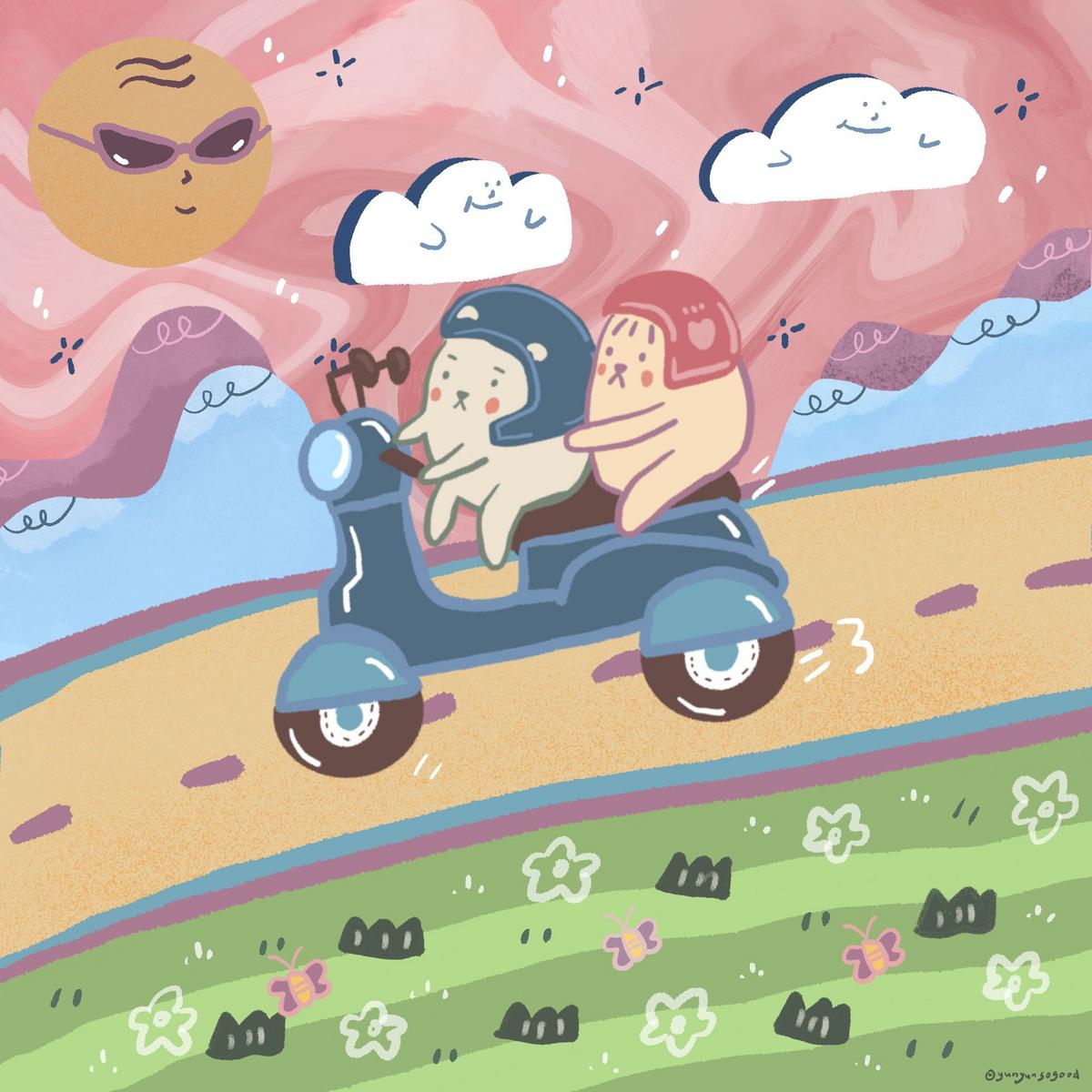 #YunYun星球 ✨ 醜熊帶著喵比兜風趴趴走~~ 騎機車坐後座看風景最快樂🥳 不喜歡帶安全帽每次帶安全帽 瀏海都會塌掉꒰ˊ• ·̭ •̥ ꒱ #yunyundraw#illustratin #台灣插畫#手繪#電繪#插畫#設計 #原創 #創作#台灣#星球#yunyun星球#醜熊#小夥伴 #宇宙 #兜風#出去玩#騎車