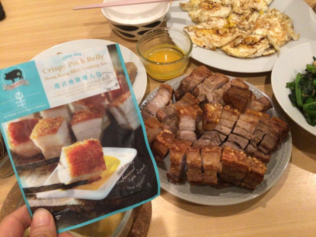 來自台灣的包裹!姊姊在箱子裡塞滿各種零食還有一些調理包、調味粉,今天的脆皮燒肉就是其中一包!