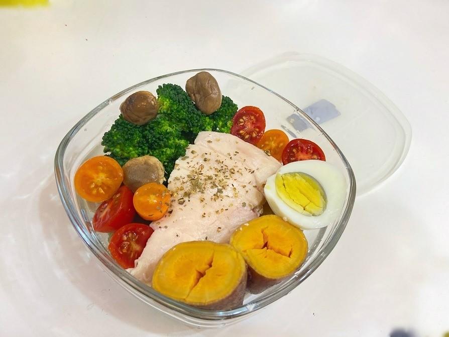 舒雞食作雞胸一塊、番茄、起司片、生菜、杏鮑菇、雞蛋、麵包