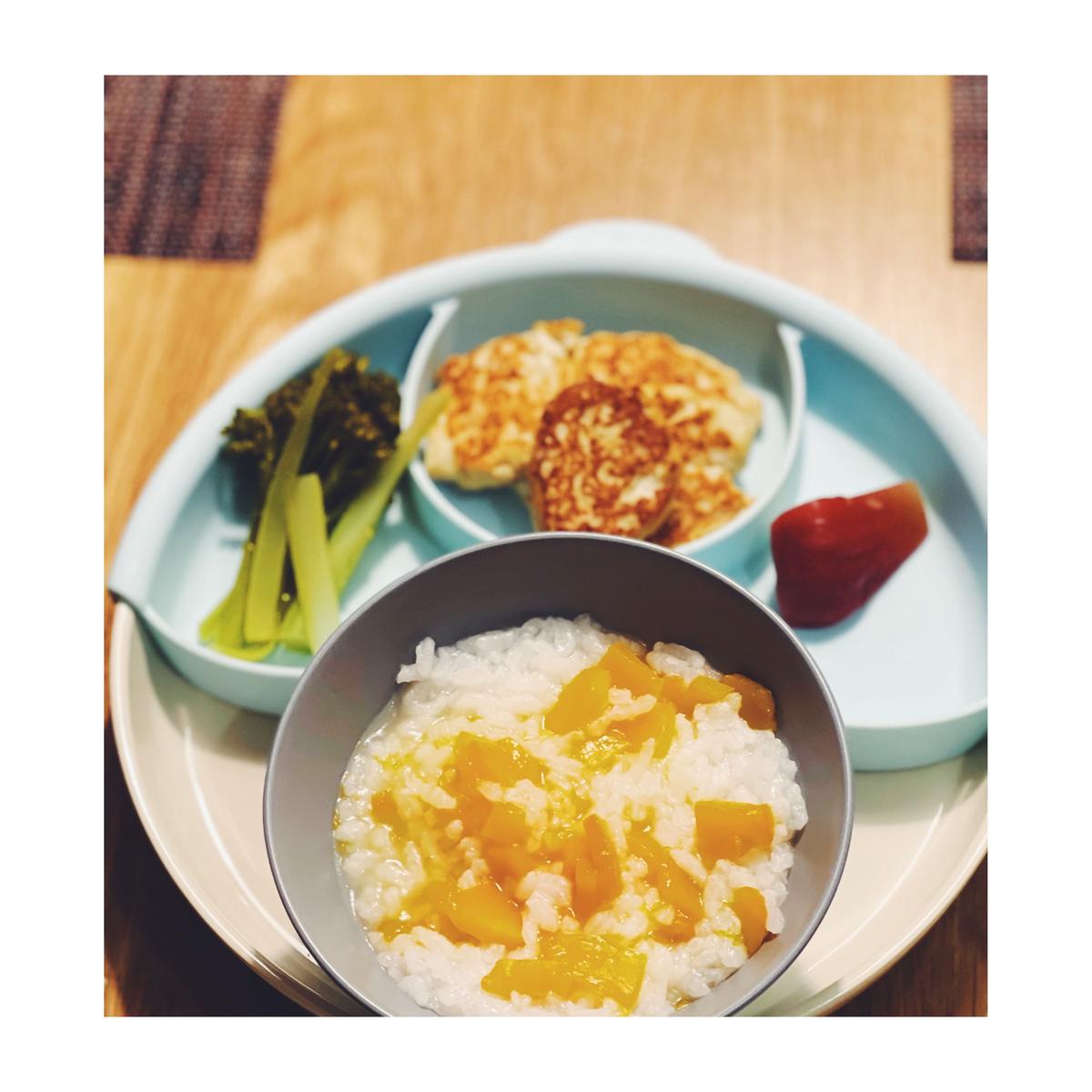 呱呱吃什麼:寶寶雞肉排、蒸青花筍、南瓜飯、蓮霧