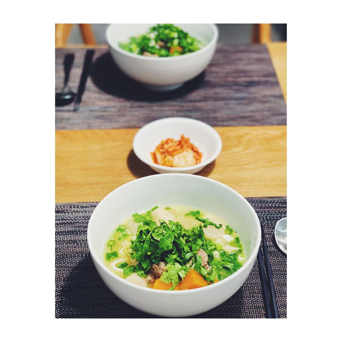 之前燉牛肉湯時每次都邊喝邊嚷嚷說「這個湯加麵一定很好吃」,哪乾脆今天就直接來吃清燉牛肉麵吧!而且今天這種天氣喝加了花椒跟白胡椒的湯最適合不過了!喝起來暖呼呼的,全身都熱起來~