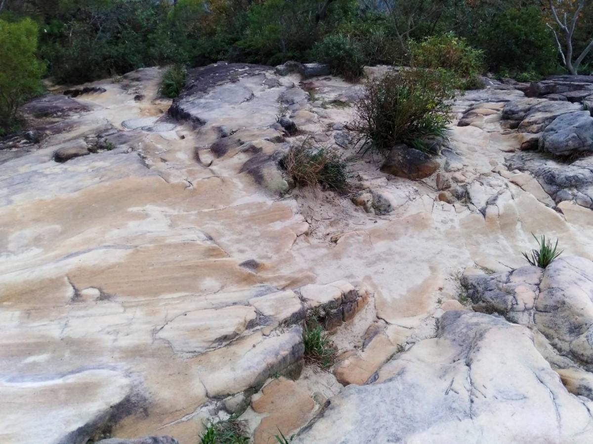 登頂前的這段路要十分小心,很滑!剛剛谷歌一下,原來是砂岩與頁岩層交錯,經長時間的海水沖刷而形成了現今的地形景觀。(來自維基百科)