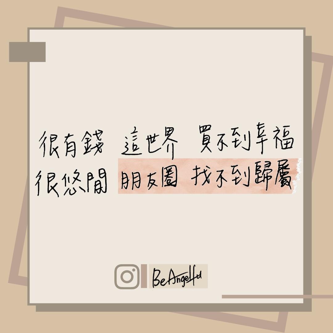 有沒有這種時候呢 就是在你的朋友圈裡 他們好像都有各自自己比較好的朋友 偶爾 或者說 常常 感到沒有歸屬感 . 很悠閒 朋友圈 找不到歸屬--黃鴻升<地球上最無聊的下午>歌詞 . 這句話最近真真切切地打入我心 甚至感到很難過啊! . #手抄歌詞 #地球上最無聊的下午 #黃鴻升 . . . || 呂行者的足跡 || 更多閱讀筆記在 部落格 更多短篇文章在 探路客 臉書粉專 :beangellu INSTAGRAM:beangellu