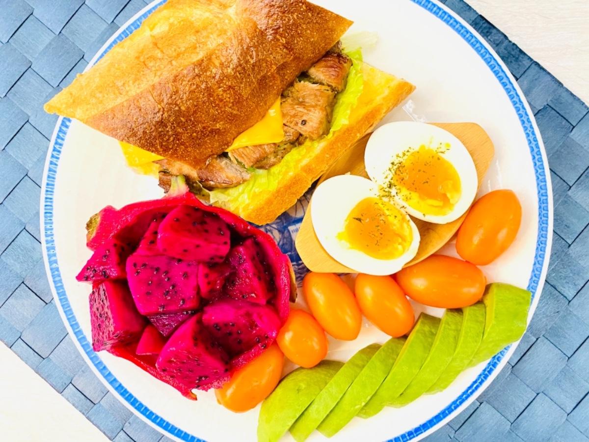主食:烤蘿勒豬肉排生菜水煮蛋香蒜法國