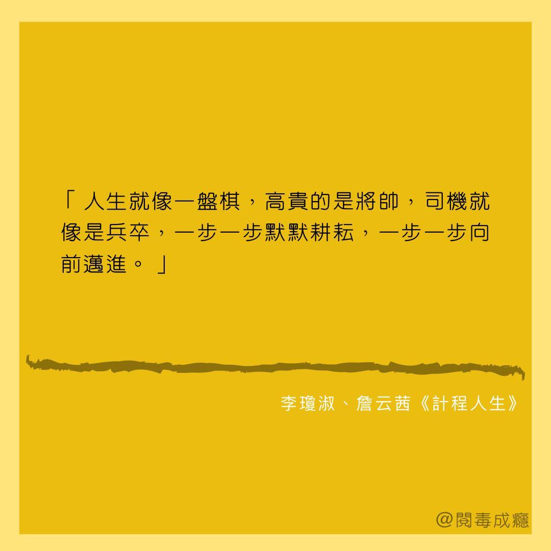 看完確實讓我產生不能以偏概全認為所有計程車司機都是愛嚼檳榔、態度不佳的想法,書裡的每位司機大哥、大姊不管遇到先後天的殘疾、突如其來的環境變故導致生活困難,就算想過一走了之,但最後都努力撐過去了,而當生活有餘裕後,主動透過行動幫助弱勢族群或回饋社會,像是加入民間救難團、為特教生和病童規劃活動和旅遊、定期捐血等,有一些司機則是會在工作空檔鑽研自行的興趣,久而久之就變成各領域中的專家,而且願意無私跟他人分享經驗和知識,覺得他們用微小的力量幫助別人,並帶給自己快樂富足的生活,這種精神很令人敬佩。