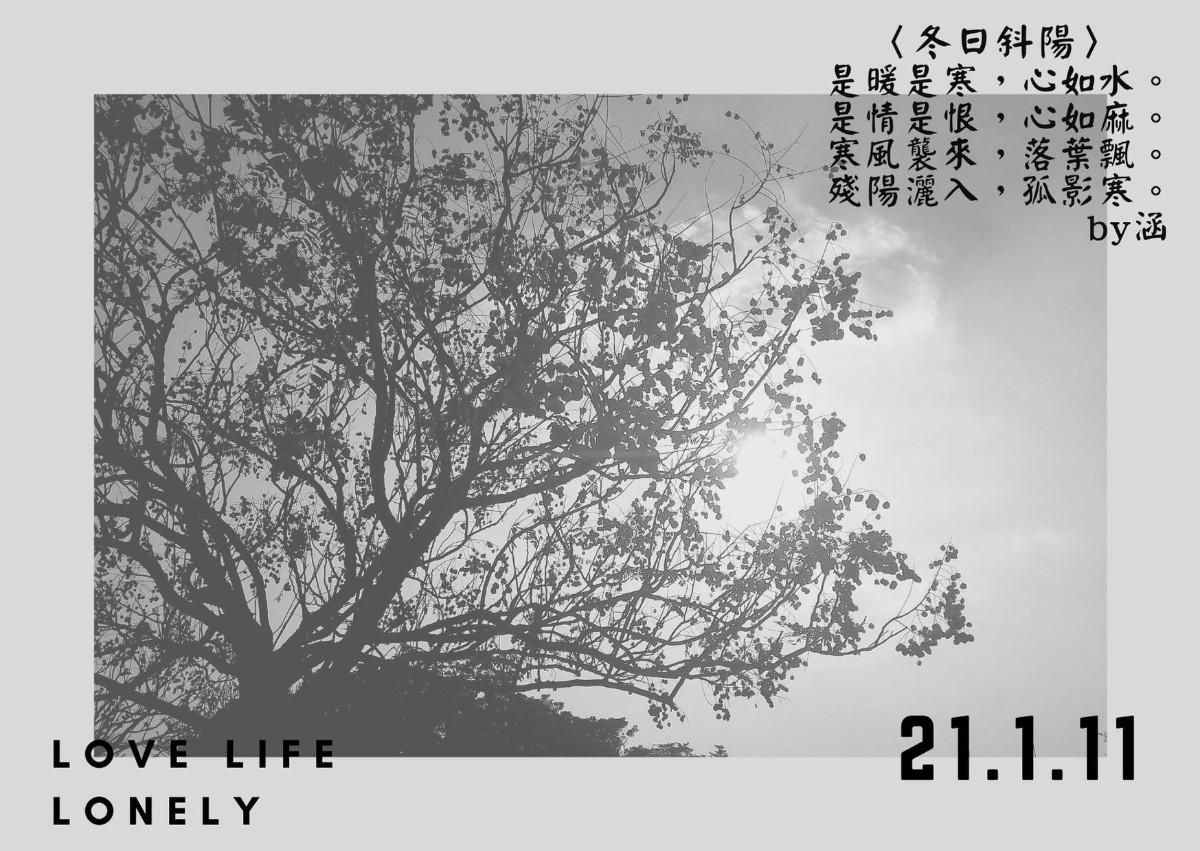 寒風暖陽,孤影老樹,出來散心,卻成了心頭事。