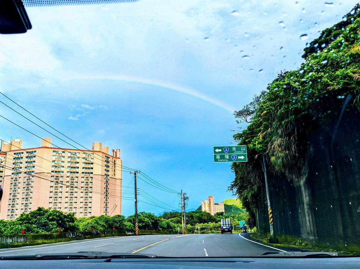一路的大雨終於在到達野柳時停歇,大雨過後在天空畫下了一道美麗的彩虹,如此可遇不可求的景色,讓我不自覺的拿起手機朝天空拍了好幾張,想當作今天故事的封面,相較於我過度感性的驚嘆,她那無動於衷的理性表態,頓時讓我笑了出來