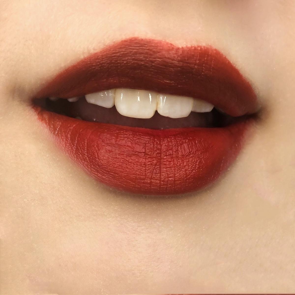 絲絨唇釉也有驚艷到我!刷頭柔軟擦起來貼唇很舒服!唇釉也不會有乾澀巴唇感,重點是,顏色不論薄擦還是厚塗都超 好 看!!