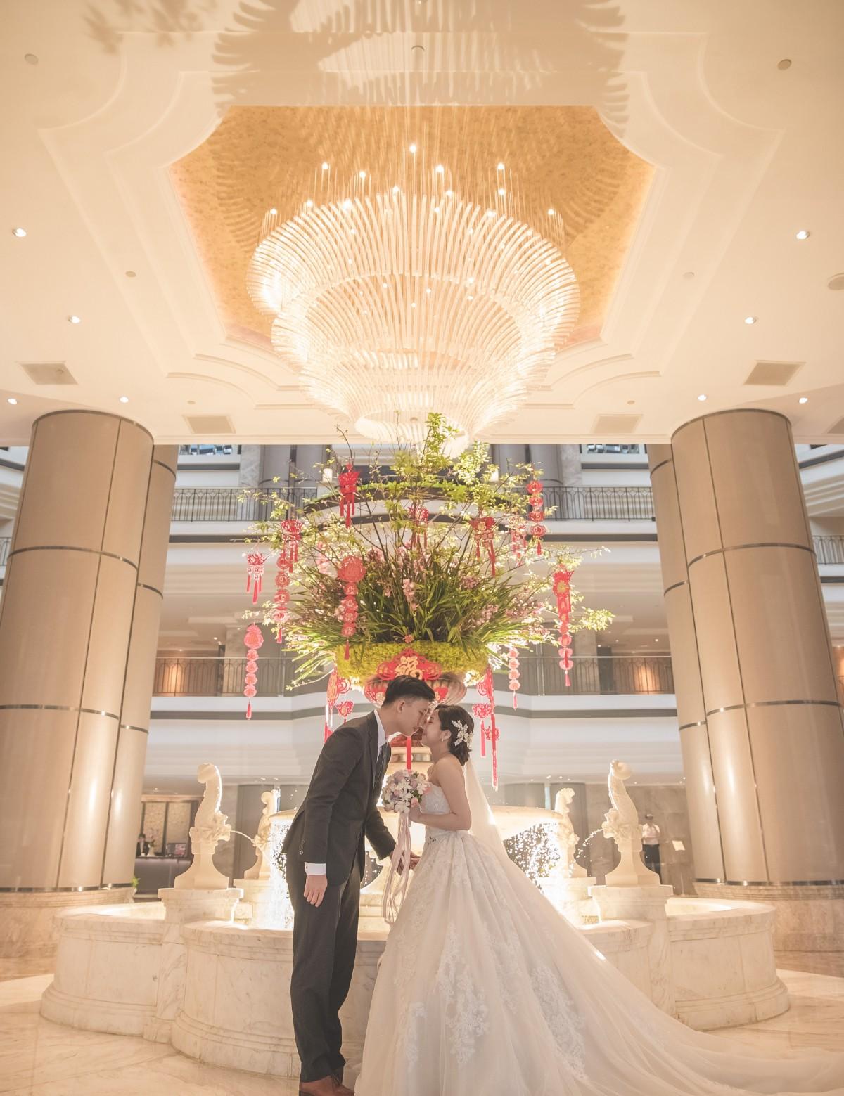 在結束女方家就要前往男方家囉!我們結婚當天的迎娶是從男方家出發到女方,然後闖關、拜別,之後娶回男方家奉茶、入洞房等流程。我們把君悅酒店的君悅行政景觀套房當作男方家哦!