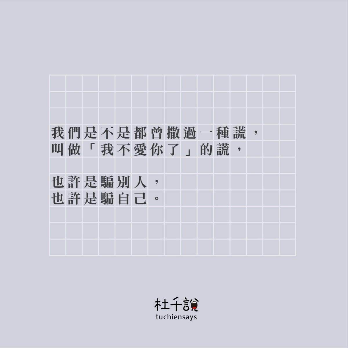 你是騙別人, 還是騙你自己? - - #杜千說 #tuchiensays #電影 #歌詞 #日常 #心情 #寫作 #我不愛你了 #騙別人 #騙自己 #謊言 #關於愛情 #那些文字 #短文 #愛情 #寫文字 #寫愛情 #寫故事 #那些電影教我的事