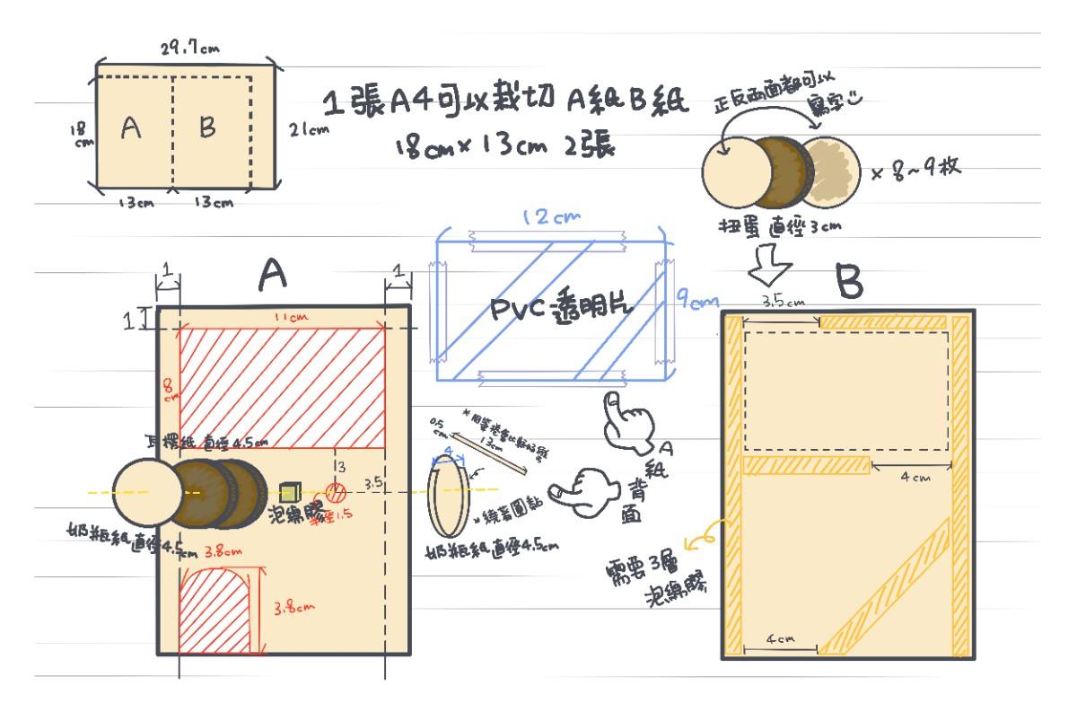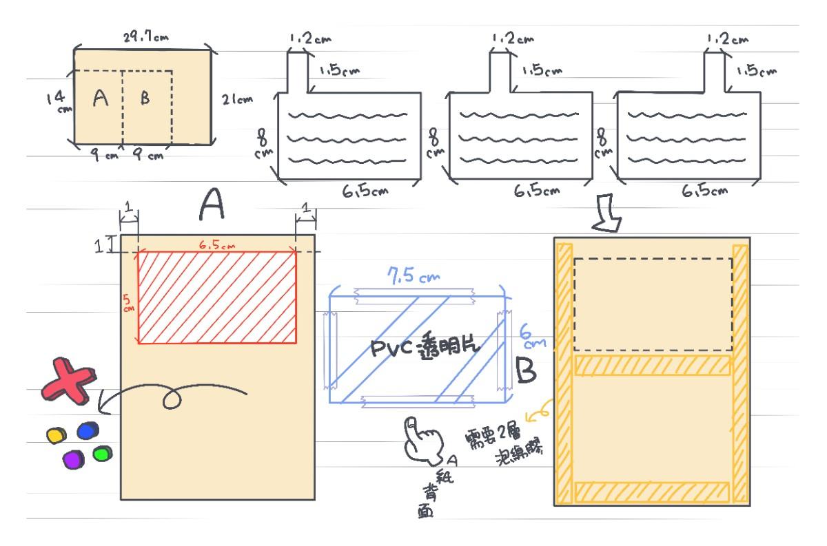 🙋🏻♀️備註: 紅線是裁切的線,深灰色虛線是鉛筆標記喔! 泡棉膠貼上後就可以擦掉了