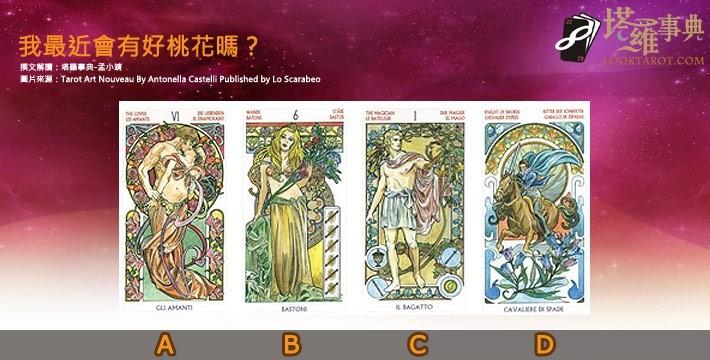 也好想談戀愛!但不知道自己是不是能有好桃花!有人在身邊才能好好談場戀愛啊!還是明明桃花就在身邊沒發現,不然就是自己要踏出一步追尋自己的桃花呢?想知道自己的好桃花來臨了嗎?快來玩孟小靖老師的塔羅占卜,現在就跟隨你的直覺,依照你的第一印象,選一張你最喜歡的塔羅牌吧!